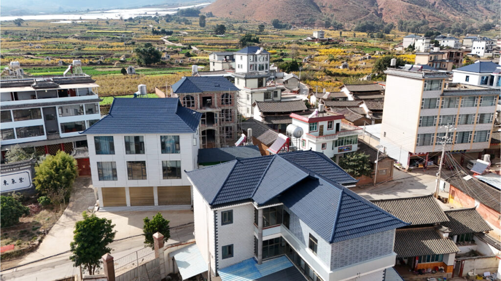 A key innovation in this project is the switch from traditional clay tiles to Stone Coated Metal Roof Tiles. Given Yunnan’s earthquake-prone geography and variable climate, this material offers superior performance: